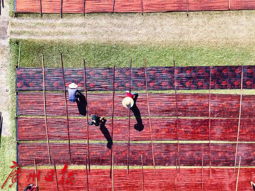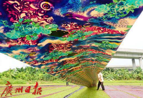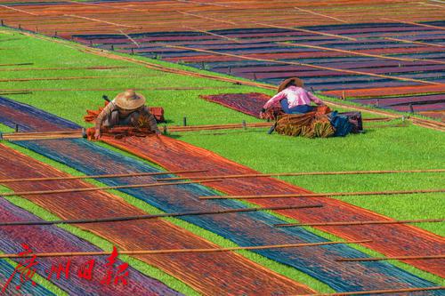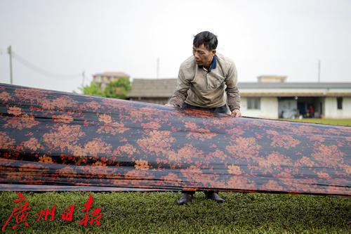 广州南沙榄核香云纱晾晒场。