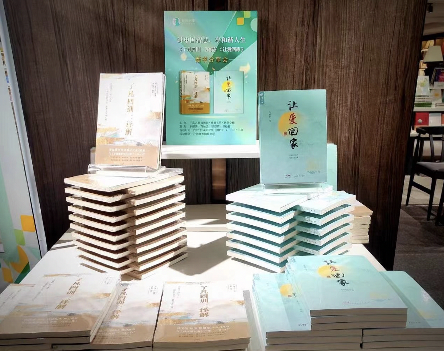 华夏悠悠5000年文明,有着众多引人入胜的经典故事。而古人至善至美的大智慧,就留存在这一本本的经典著作中。有人说:古人留下的东西,太晦涩,我看不懂。也有人说:国学著作版本太多,良莠不齐,根本不知道选哪个版本好。更有人说:看了很多讲中国智慧的书籍,但很难学以致用,让自己的生活有所改善。4月2日下午2:30,由广东人民出版社主办,新异心理协办的《了凡四训:译解》《让爱回家》新书发布会,在楠枫书院顺利举行。作家、心理学家李新异老师和广大读者分享自己创作《了凡四训:译解》和《让爱回家》两本新书过程中的故事,以及多年研究实践的感悟所得。《了凡四训·译解》《让爱回家》编委冯映云和张新雨也在新书分享会上介绍了在编辑两位新书过程中的一些感人细节。