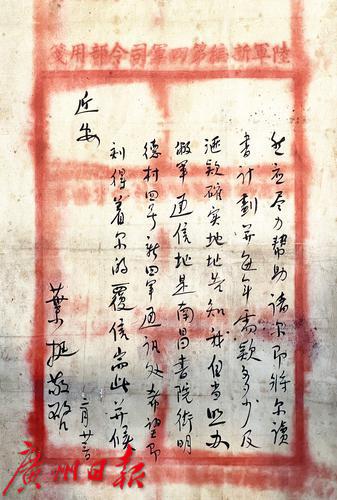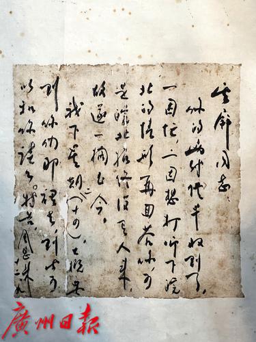 叶挺写给曹渊烈士儿子曹云屏的亲笔书信(复制件)。