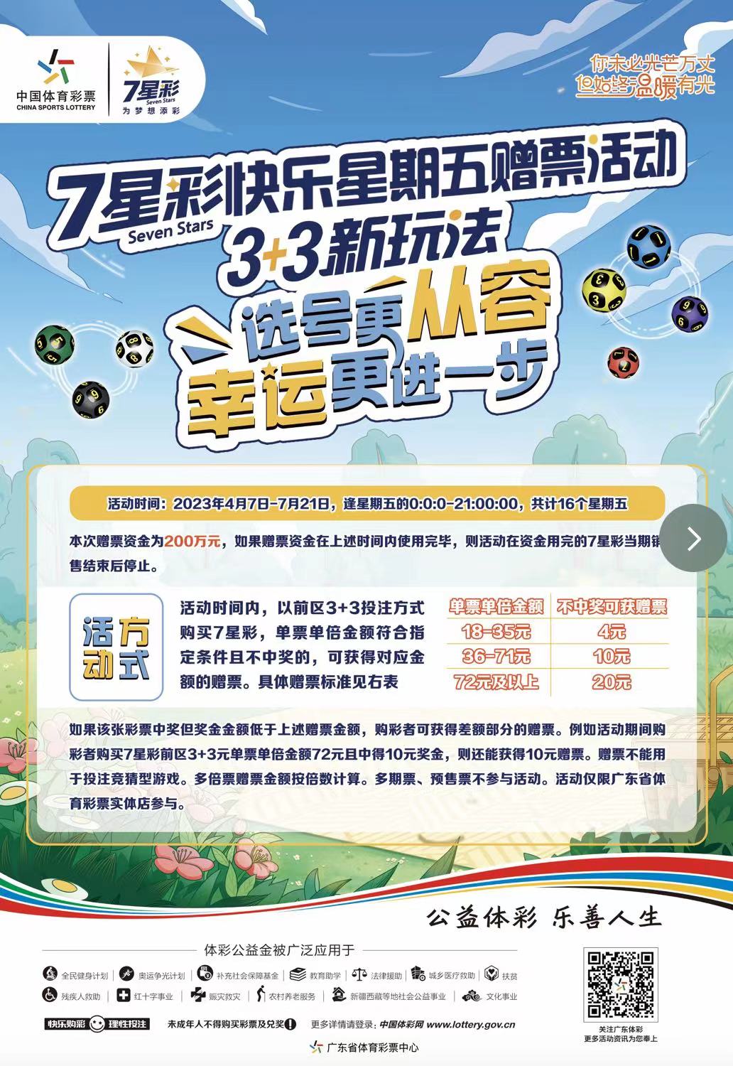 为回馈大家的热情支持,广东体彩即将推出7星彩快乐星期五赠票活动,16个星期五,200万元赠票,为大家周末再添一分欢乐!