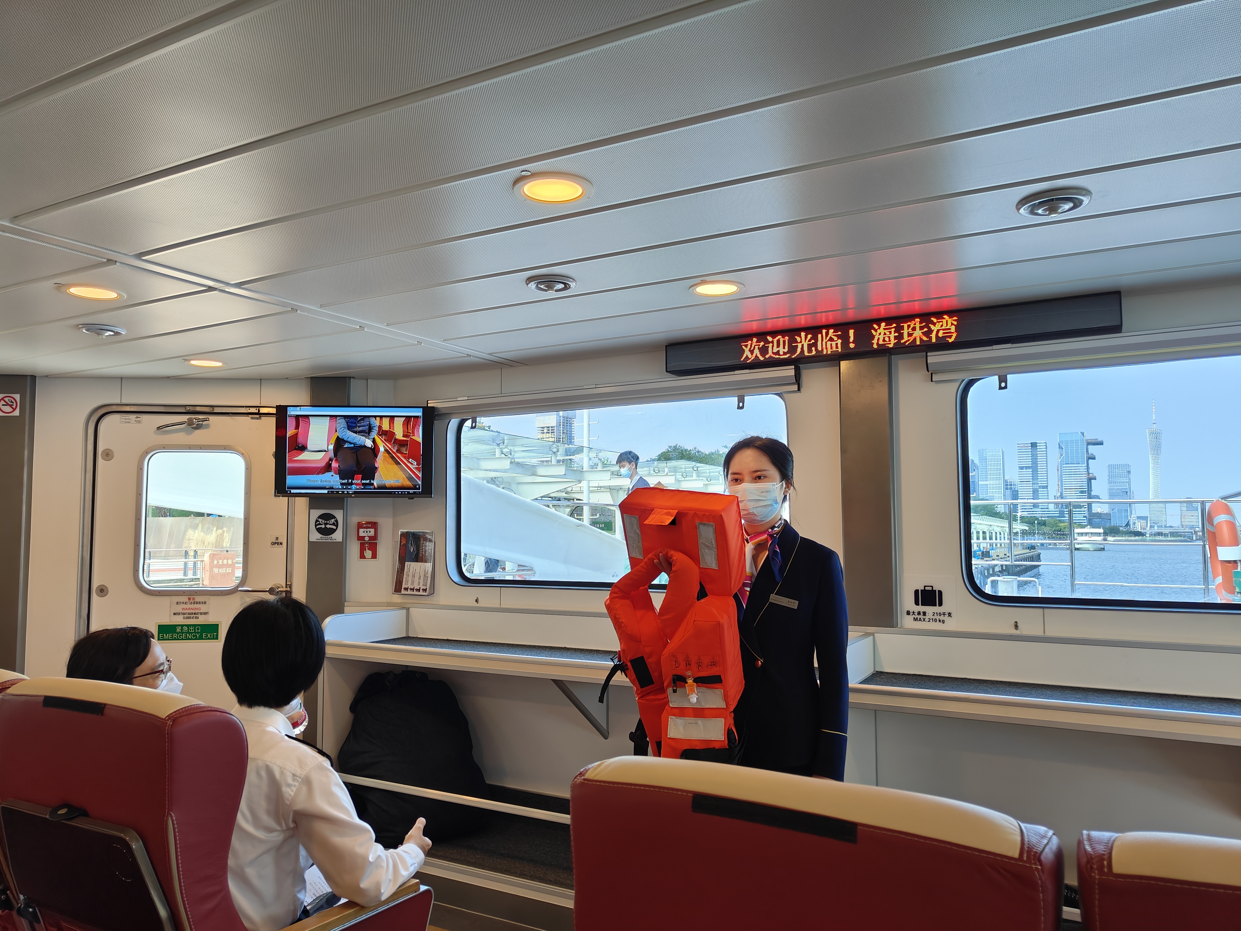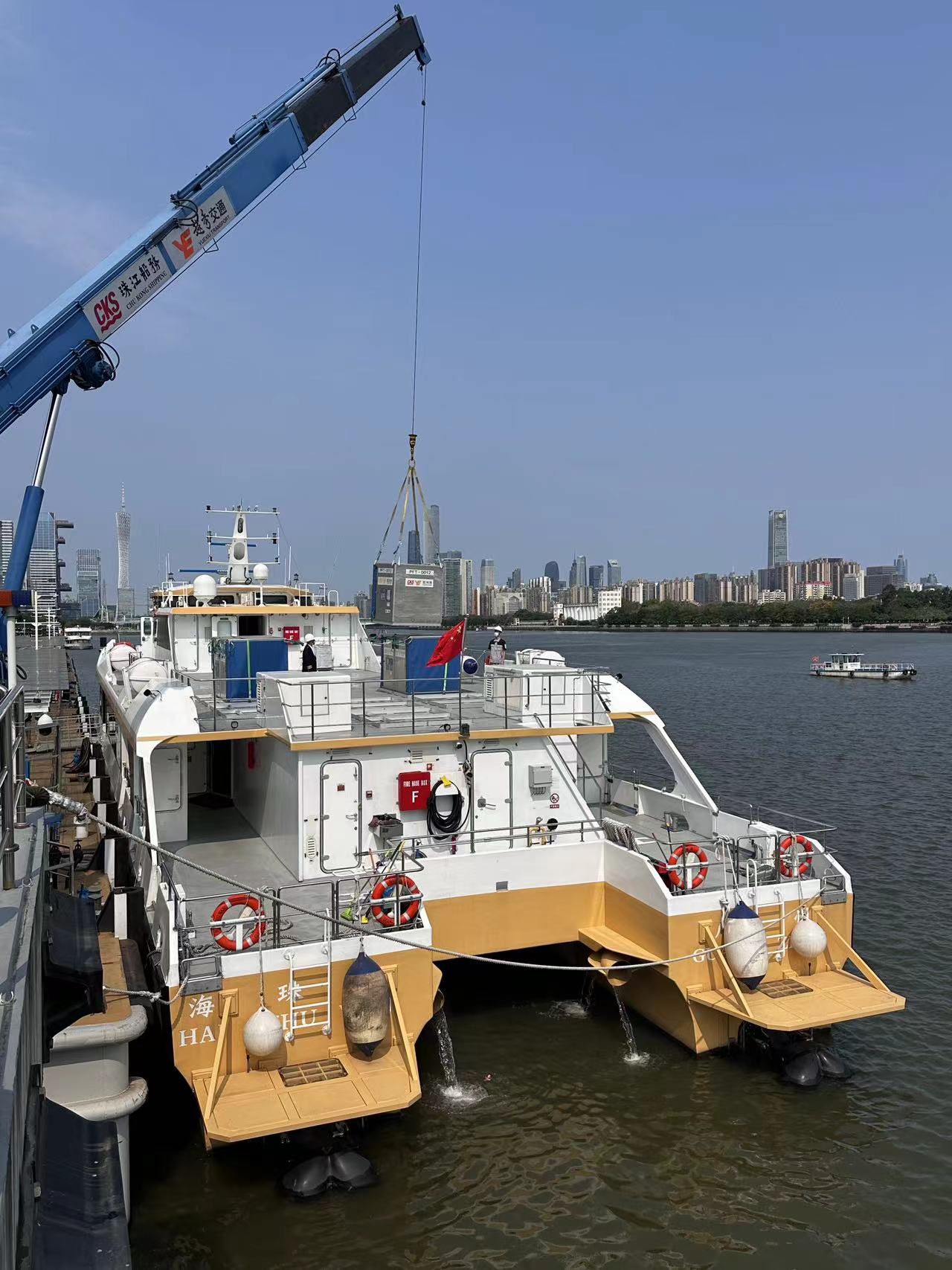 广州日报·新花城记者在现场了解到,为做好琶洲港澳客运码头开放的准备工作,广州海事部门已提前对拟投入运营的高速客船“海珠湾号”和“海珠湖号”实施船舶安全检查、船舶防污染检查等,督促航运公司组织开展船员履职培训,确保船舶适航、船员适任。