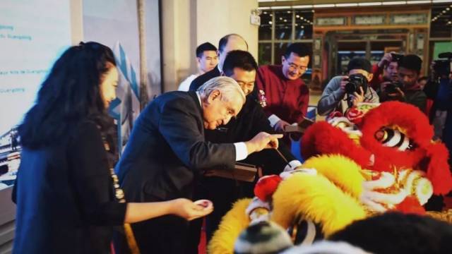 拉法兰为纪录片开机仪式上的醒狮“点睛”。