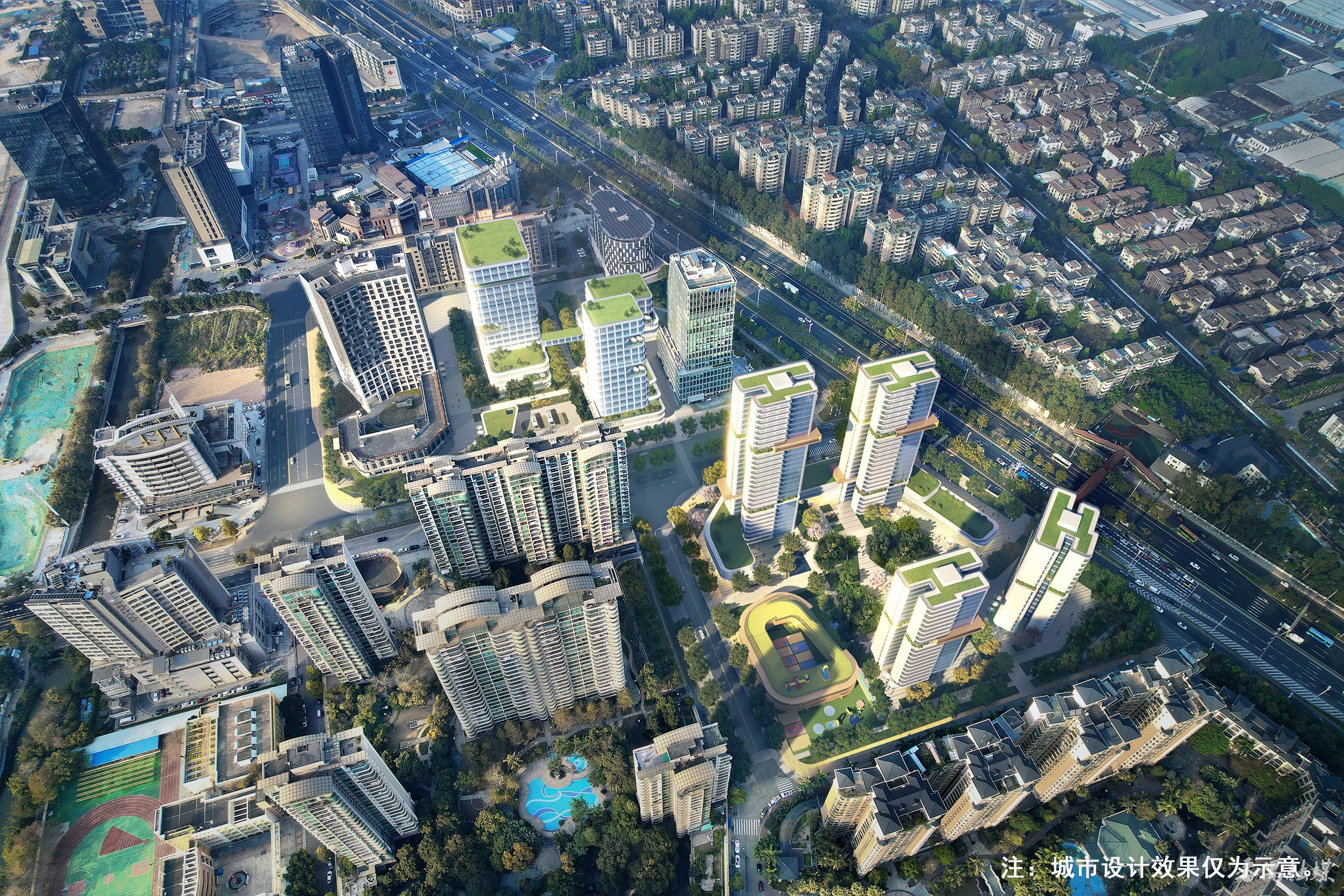 根据规划,将补充公服配套,打造高品质宜居社区。结合番禺广场站进行城市设计优化提升,落实绿色慢行系统,新增幼儿园、社区服务站等多种公服设施,提供更全面的社区配套服务,创造宜居宜业的高品质居住社区。同时延续番禺广场慢行体系,沿东兴路、东盛路打造绿色慢行通廊,联系中轴公园、罗家涌;沿东兴路、东盛路裙房布局幼儿园、社区服务站等社区公服设施;维持原城市设计方案沿番禺大道界面,塔楼天际线错落有致的空间形态。