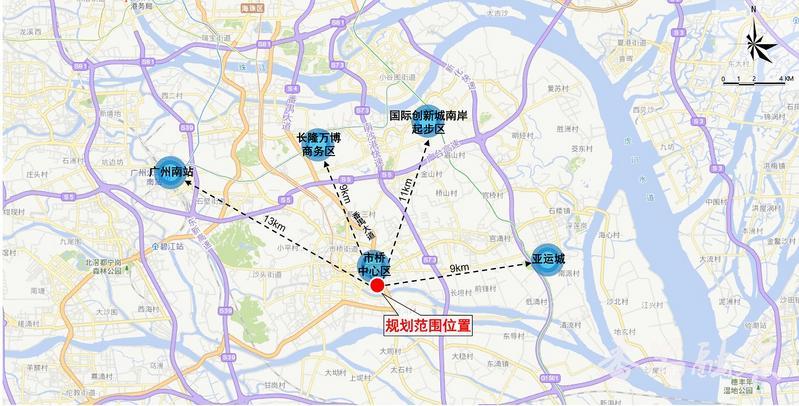 本次通过的规划用地就包括了番客隆地块,规划范围面积3.76公顷,现状为空地、汽车4S店、空置商场(番禺沃尔玛)及公交首末站。该地块位置优越,临近市桥中心区,番禺广场地铁站位于规划范围西北侧,为3号线、18号线、22号线、3号线东延线(在建) 换乘站。规划范围周边基本为已建成居住区及商业中心,中轴公园正在建设,周边800米内还有2所小学和2所专科医院。