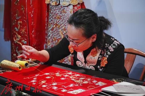 “锦绣中华——传统织染绣艺术与生活展”,于2023年4月8日在广州市文化馆新馆广绣园开幕,来自“知否岭南”“丝韵江南”“彩云之南”三大展览主题空间的近50项全国各地具有代表性的传统织染绣艺术类非遗项目齐聚一堂竞芳菲,在多元地域文化的多彩互鉴中绽放姹紫嫣红的迷人光彩。