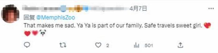 还有不少不能到现场的“丫丫”粉丝,在孟菲斯动物园社交媒体账号下留言,用暖心的话语和“丫丫”说再见。