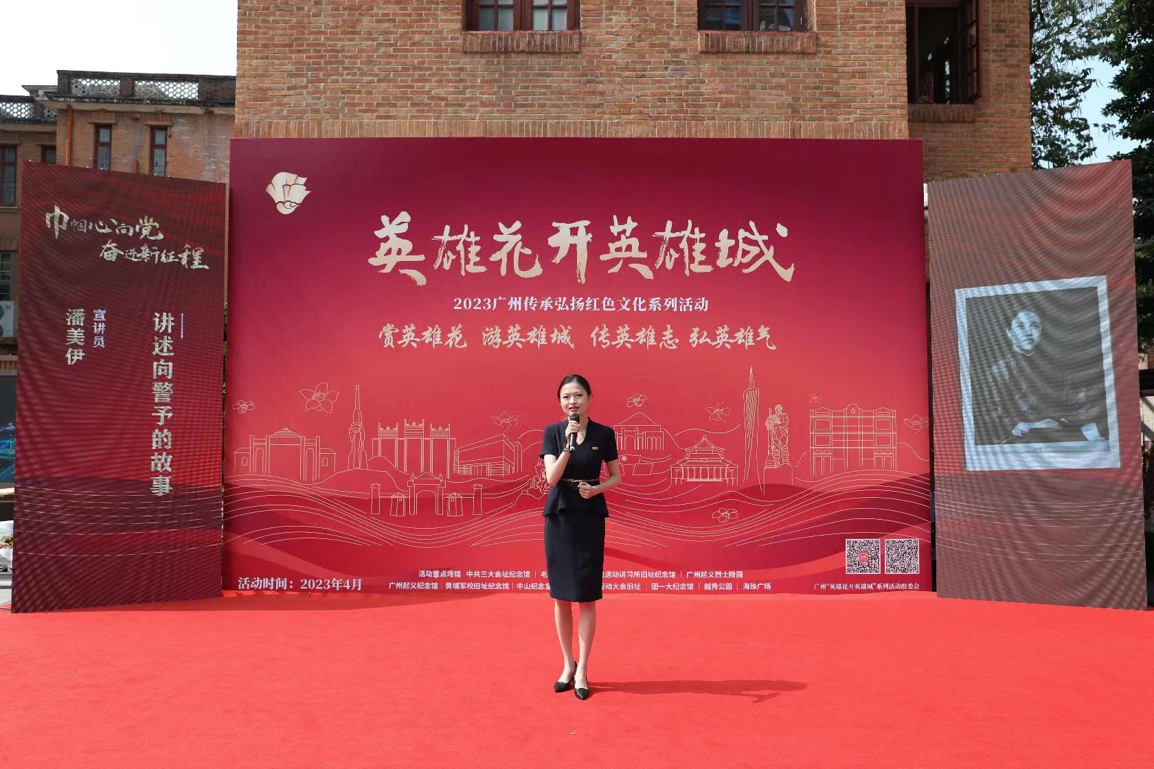 中共三大会址纪念馆讲解员潘美伊生动讲述了参加中共三大会议唯一女代表向警予的英雄事迹。广东革命历史博物馆讲解员刘文君和广东女子职业学院的学生们用情景剧方式演绎了广东省第一位女共产党员高恬波舍生取义的革命故事。广州向秀丽巾帼志愿宣讲队队员、广州燃气公司乔蕾为大家描绘了中国第一位女飞行员将军岳喜翠建功航空事业的光辉一生。
