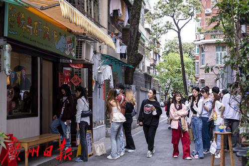 周末的东山口一带人气旺,成为了年轻人网红打卡地。
