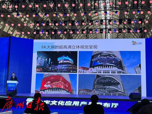 图为广州北京路的超高清融合大屏等亮相,于路表示无论身处何处,观众都可以观看相同的节目内容,形成多元化的沉浸式观看体验。