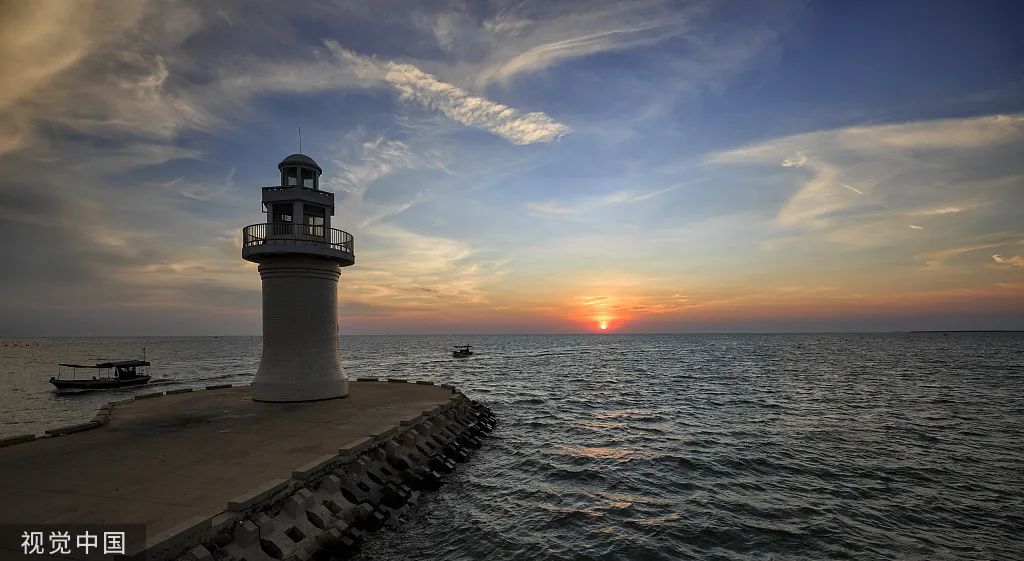 乌石港灯塔,看海上日落