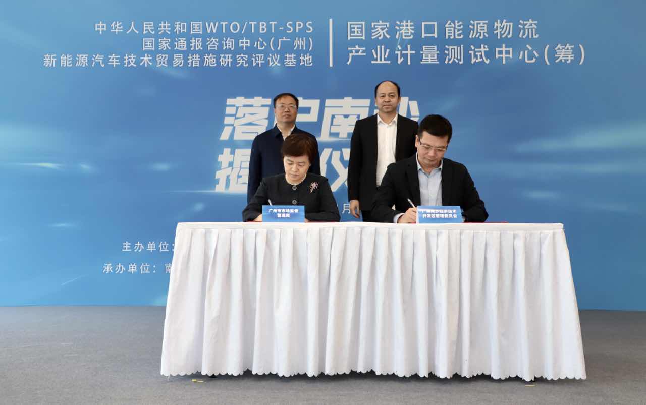 4月11日下午,中华人民共和国WTO/TBT-SPS国家通报咨询中心(广州)新能源汽车技术贸易措施研究评议基地和国家港口能源物流产业计量测试中心(以下简称“一基地一中心”)揭牌仪式在广州市南沙区融通大厦举行。
