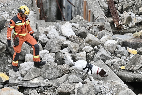 搜救犬與消防處隊員。