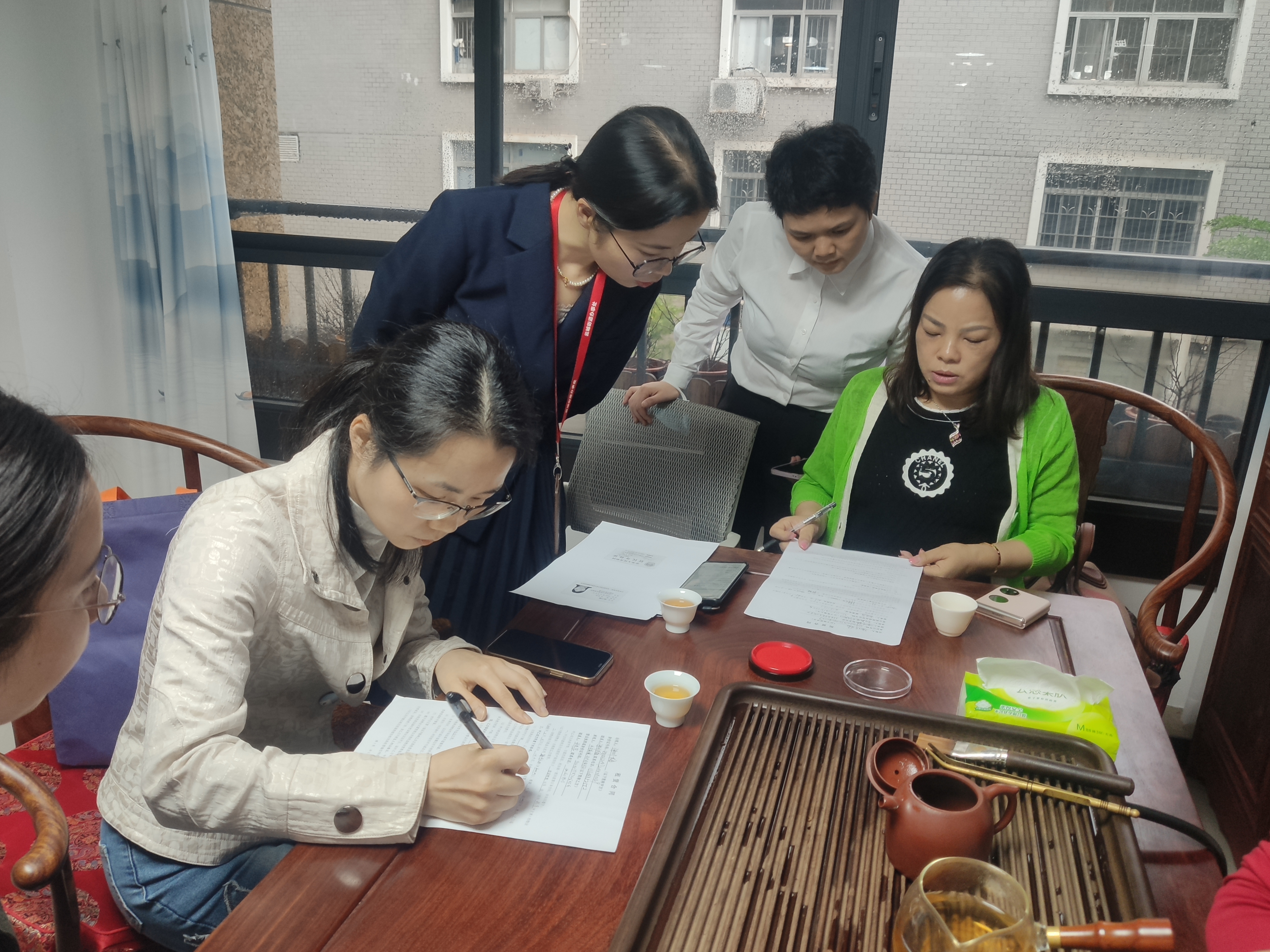 云城街暖企专员陪同企业经办人到物业管理处签订租赁合同