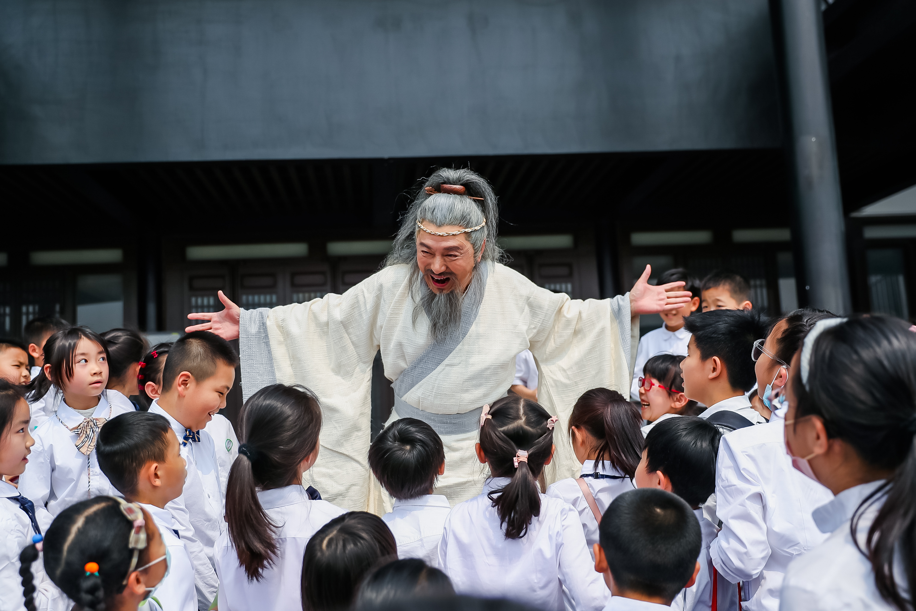 诗剧中,小团员们发挥出重要的作用,积极与表演艺术家们配合互动,不畏艰难,刻苦排练。在一次次口传心授中,在一次次言传身教中,小团员们学习到老戏骨们专业的演技和敬业的精神,更与老戏骨们建立了深厚的师徒情谊。