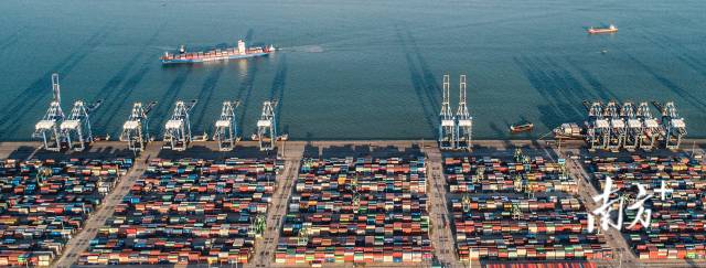 广州港南沙货运码头,远洋货轮络绎不绝。