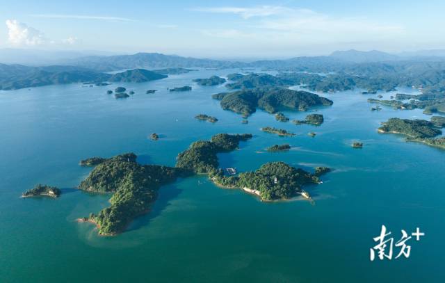 河源万绿湖是华南第一大湖,因四季皆绿得名。