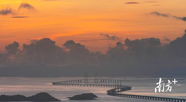 连接粤港澳三地的港珠澳大桥沐浴在晨曦之中。