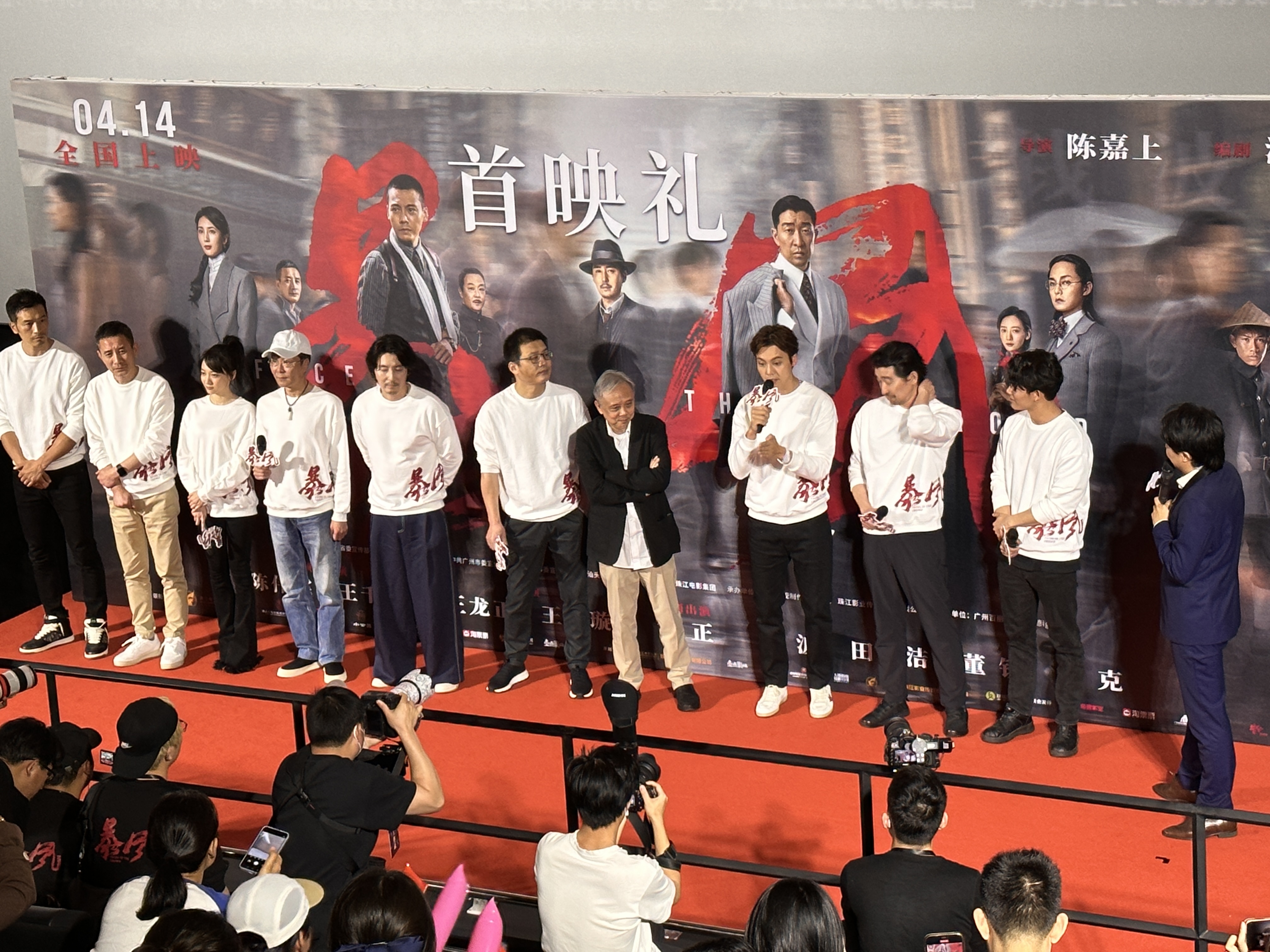 4月11日晚,由珠江电影集团有限公司领衔出品,中国电影股份有限公司北京电影发行分公司领衔发行的谍战动作大片《暴风》,在广州举行首映礼。影片放映结束,现场响起热烈掌声。首批观众纷纷表示,“很燃,很感动!”“陈伟霆动作戏太帅了”,也有汕头本地的观众表示,第一次在大银幕上听到潮汕话,看到小公园,“很亲切,会带家人二刷潮语版!”