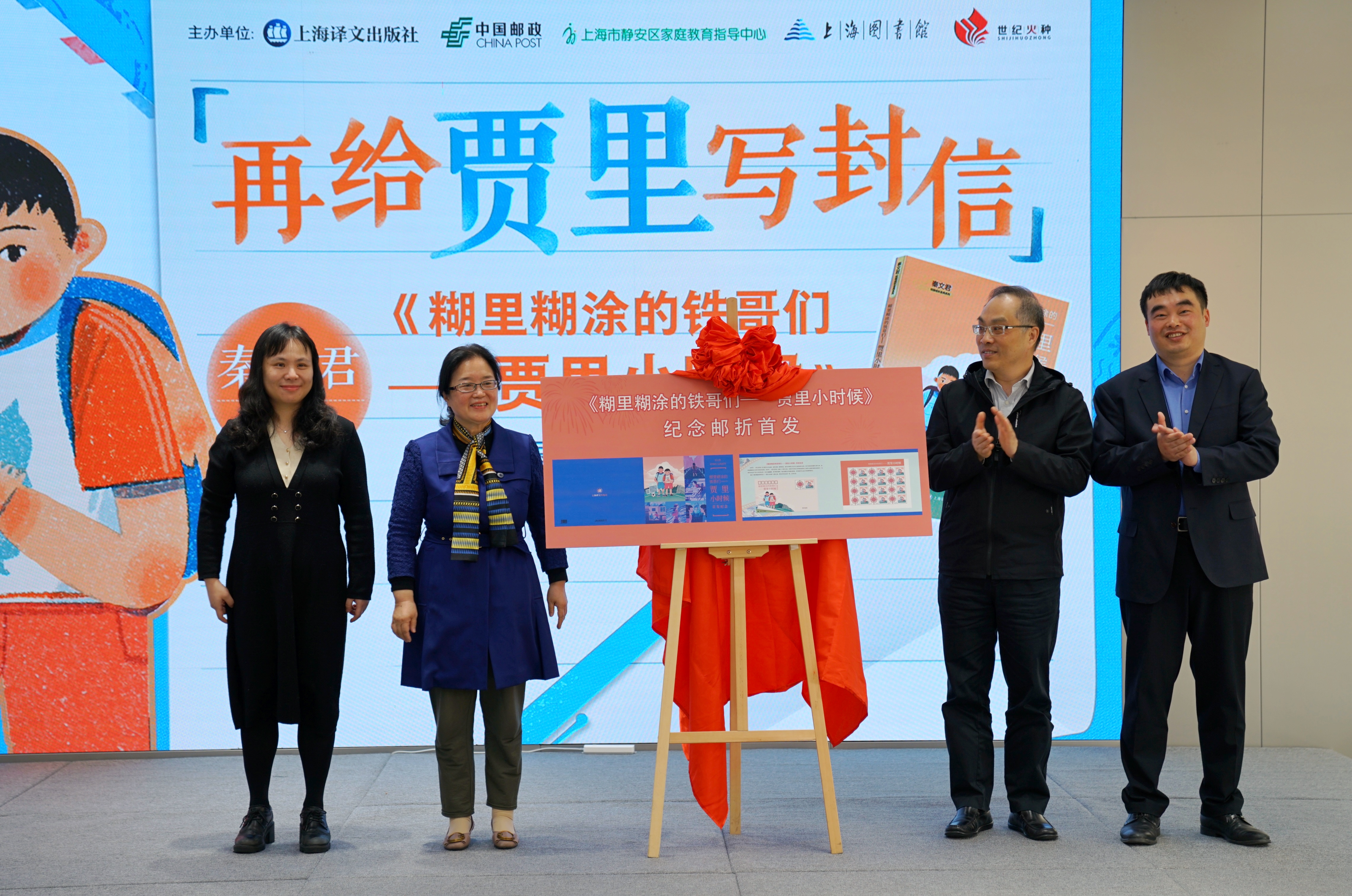 活动上,秦文君、马海平、上海译文出版社社长韩卫东及副总编辑黄昱宁共同揭幕《贾里小时候》首发纪念邮折;上海译文童书中心主任赵平将《贾里小时候》系列新书及纪念邮折赠送给上海图书馆。