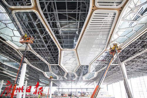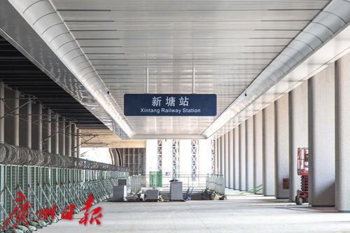 新塘站站房目前已全面进入装饰装修阶段,总体工程量已经完成90%。