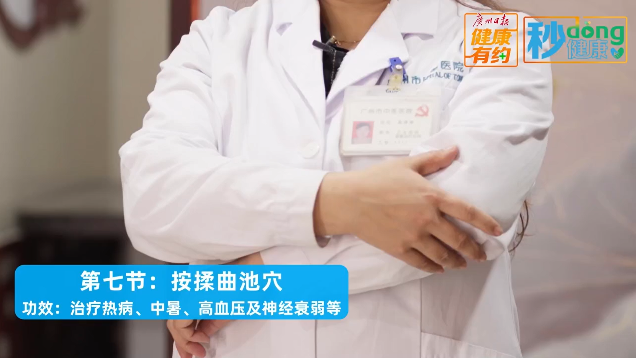 方法:按揉左右两侧曲池处,旋转一周为一拍。