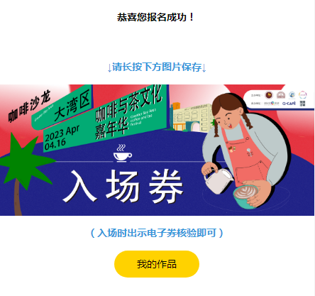 2、报名成功后,长按保存电子邀请券,作为入场凭证(需报名后保存才有效)。