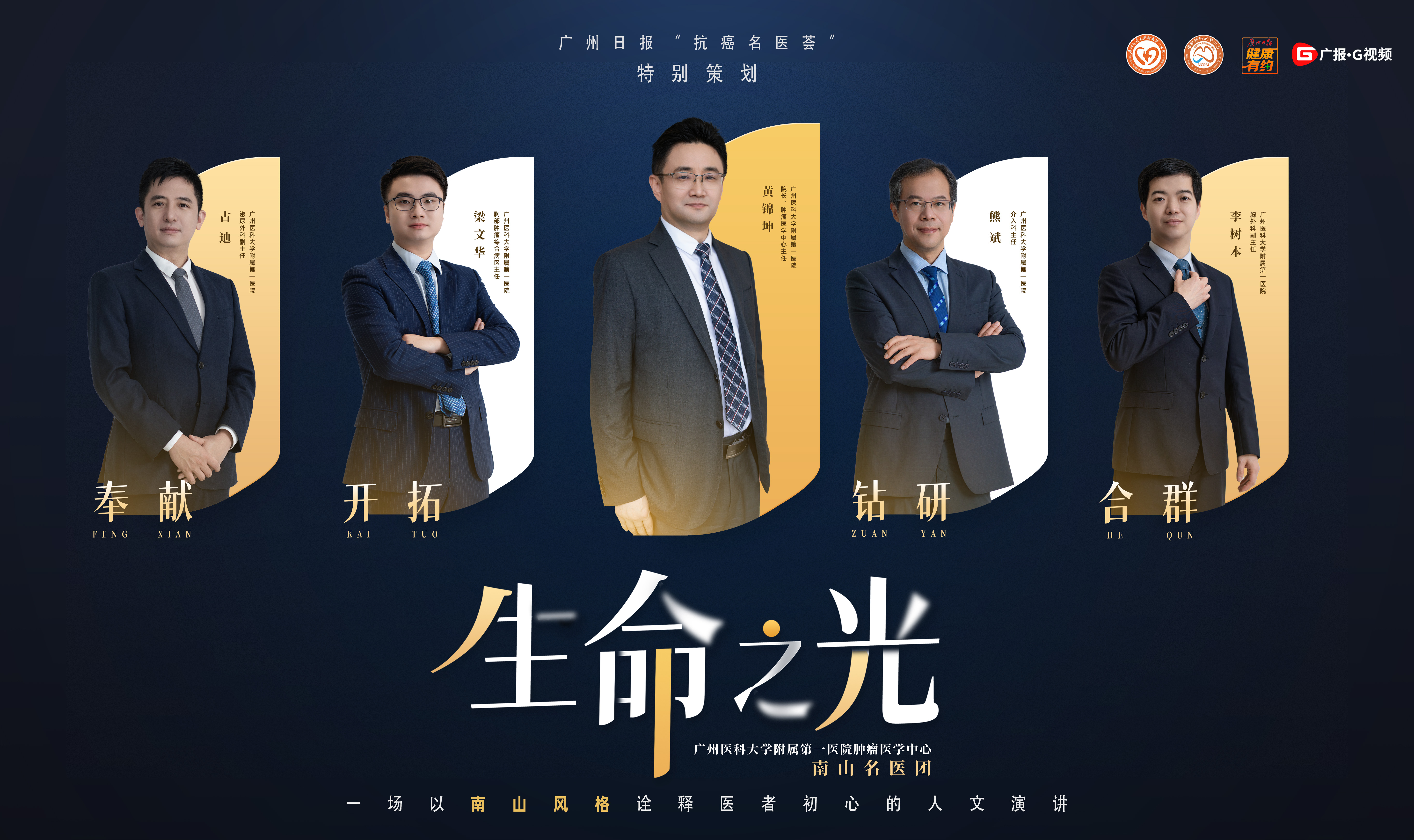 在第29个全国肿瘤防治宣传周来临之际,广州日报健康有约、广报G视频将联合广州医科大学附属第一医院(简称“广医一院”)推出《生命之光》医学人文演讲视频。