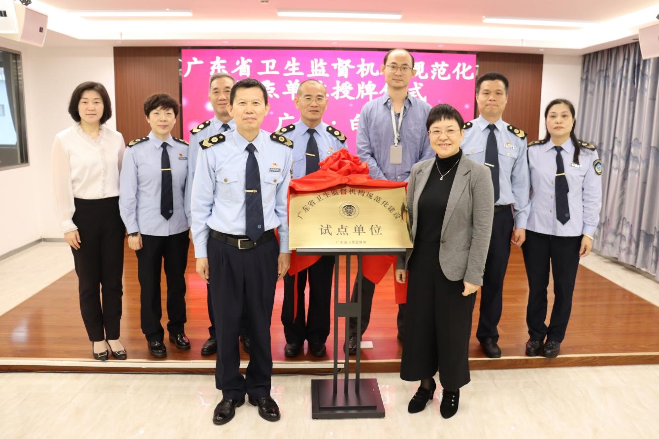 广东省卫生监督机构规范化建设试点单位授牌仪式日前在广州市白云区卫生监督所举行。据悉,该所是广东省四家卫生监督机构规范化建设试点单位之一,是广州市唯一一家规范化建设试点单位。