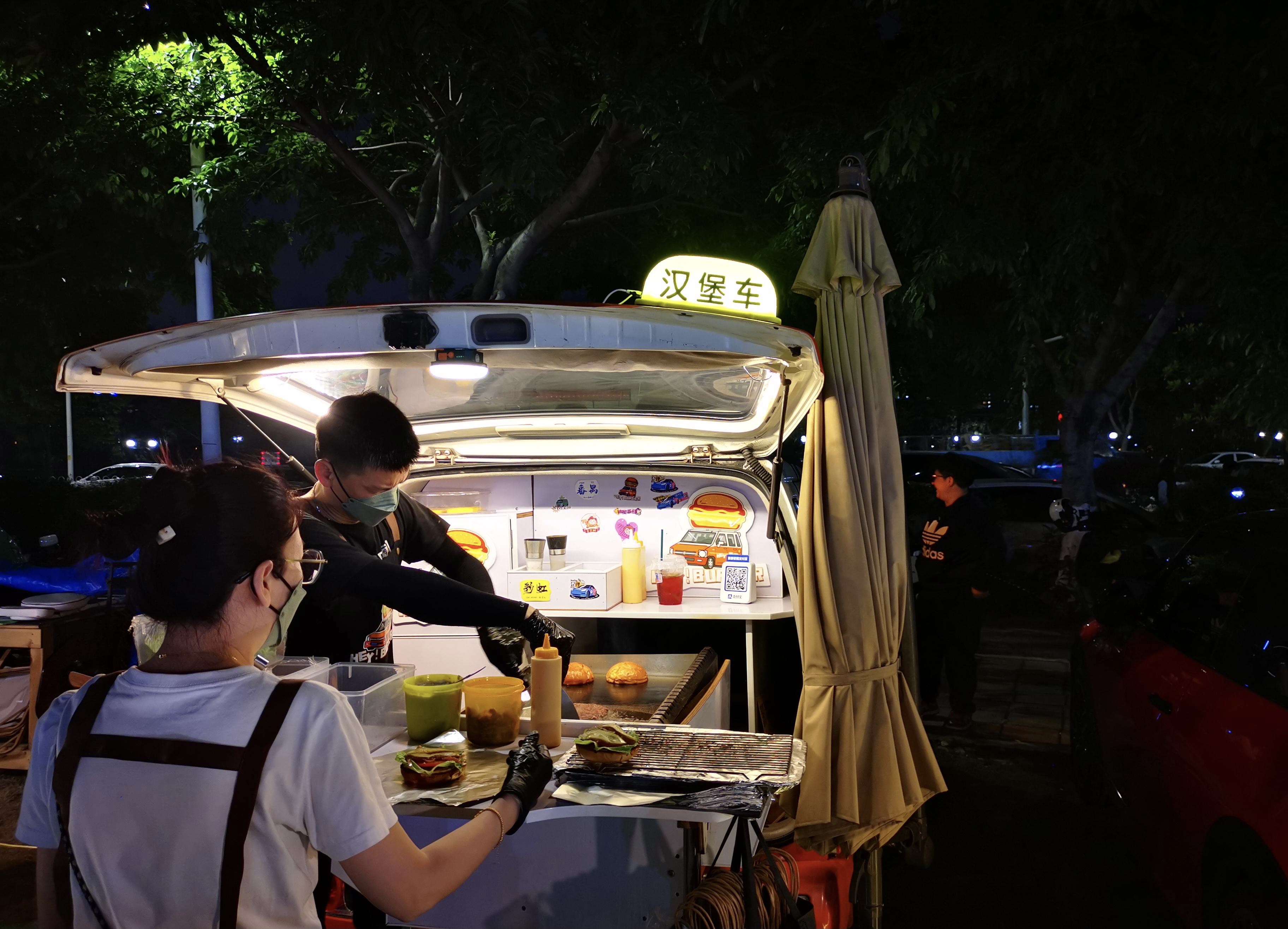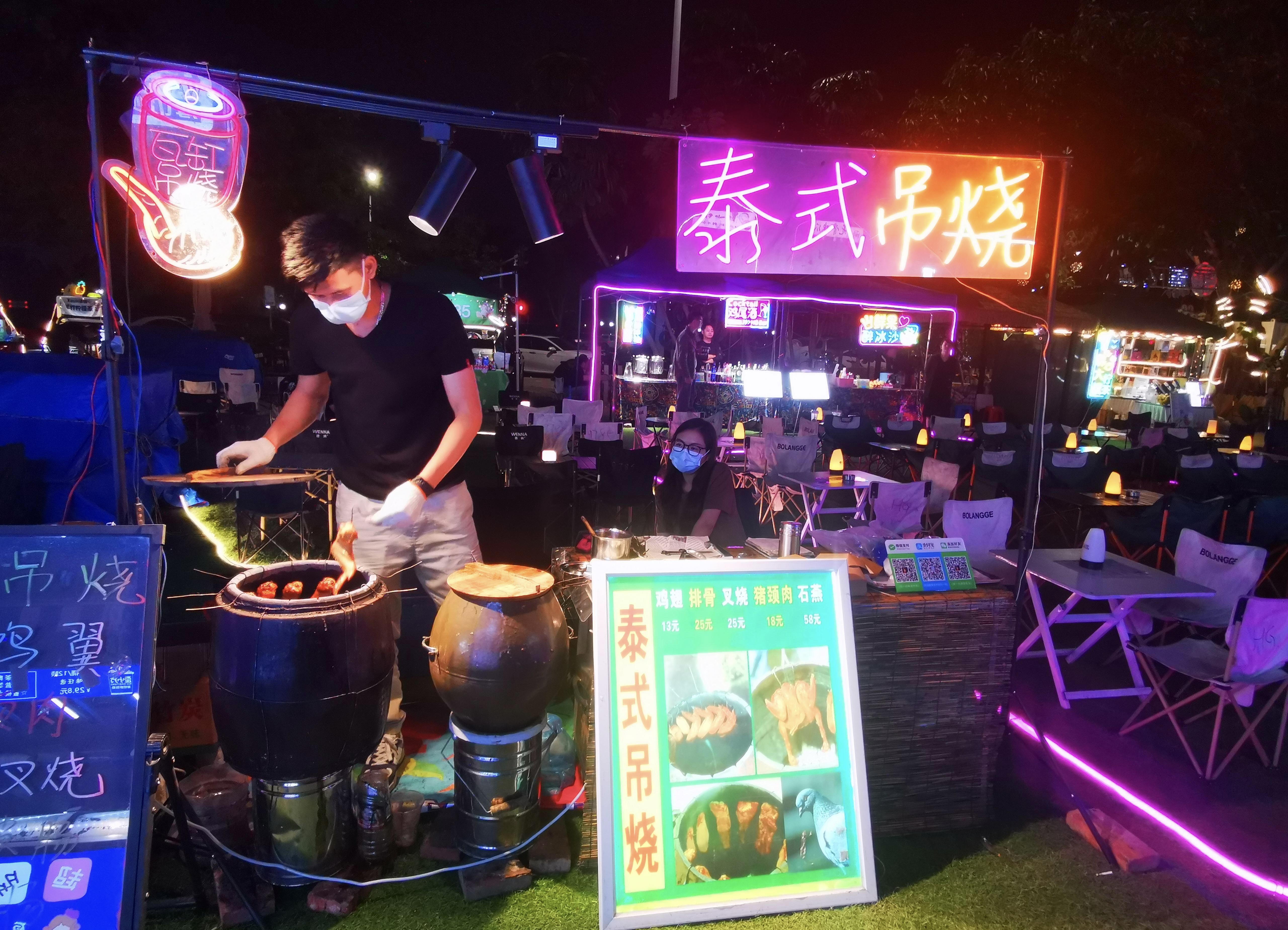 华灯初放,广州市番禺区桥南街南堤东路囍悦楼东侧光影斑驳,炊烟袅袅,美食飘香,50多个露天美食摊档、饮品摊档陆续进入营业状态,迎接顾客,一群年轻人在这里感受到了创业的激情与快乐。