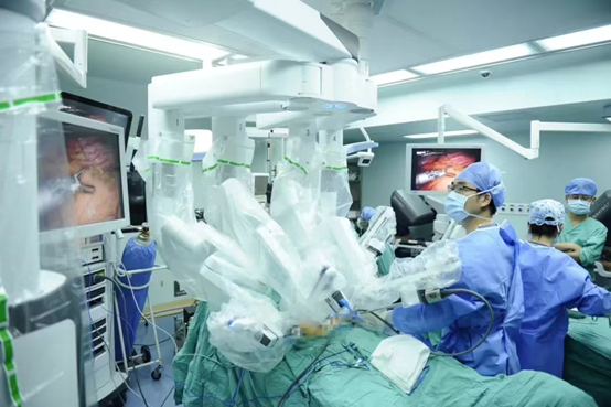 “胃肠肿瘤精准微创外科技术”李国新团队在使用第四代达芬奇机器人、AR增强现实术前手术规划技术。(受访者提供)