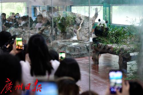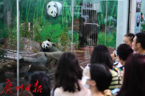 图为广州动物园大熊猫吸引了众多游客。