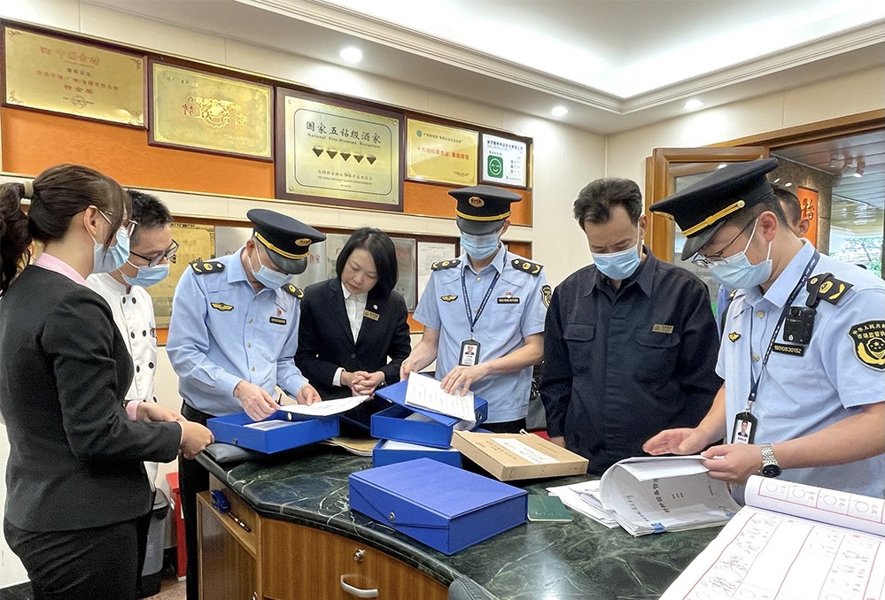 番禺区市场监管局执法人员检查番禺宾馆台账