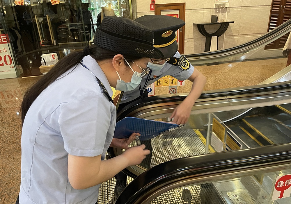 番禺区市场监管局执法人员检查电梯运行运行情况