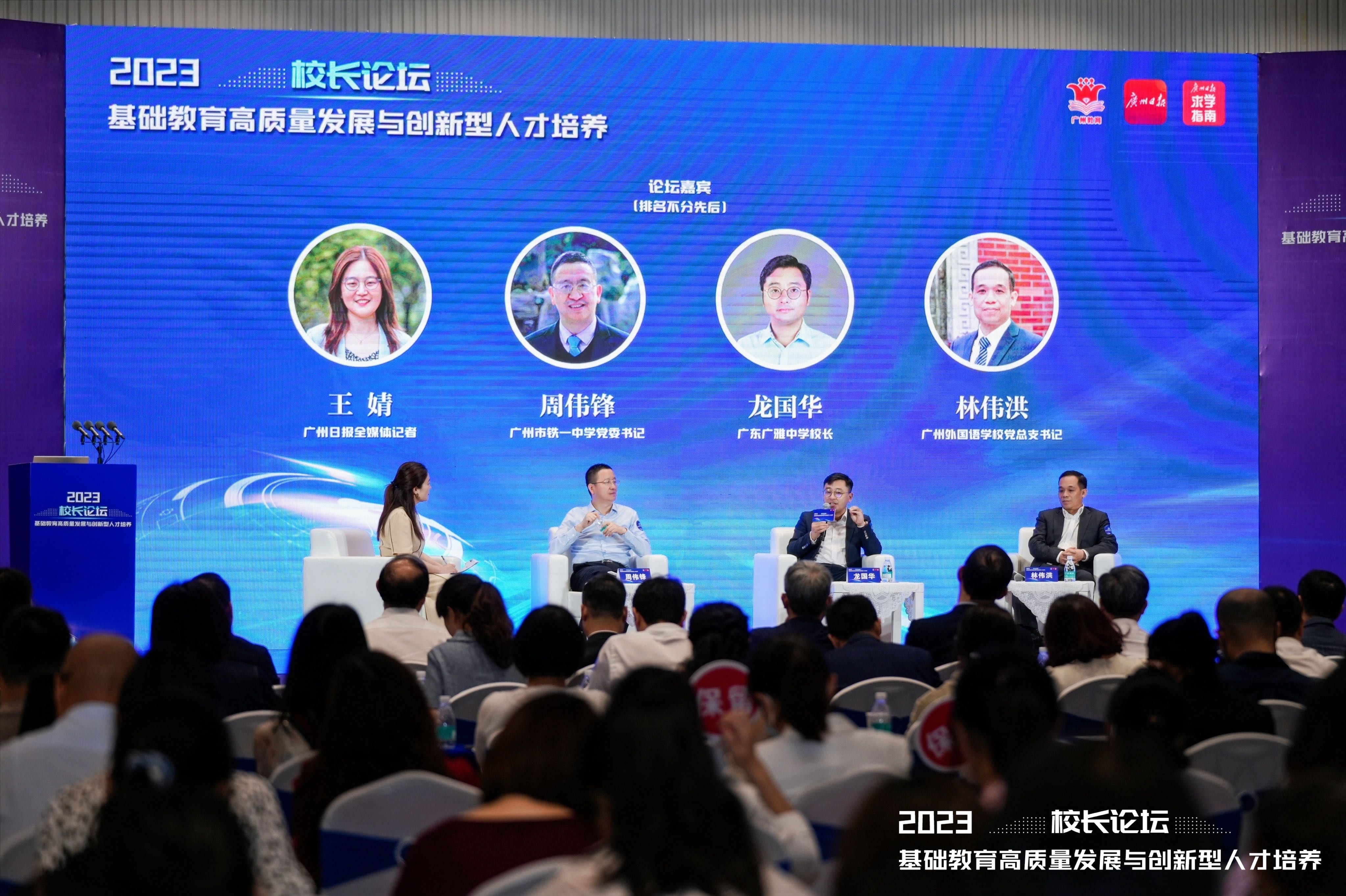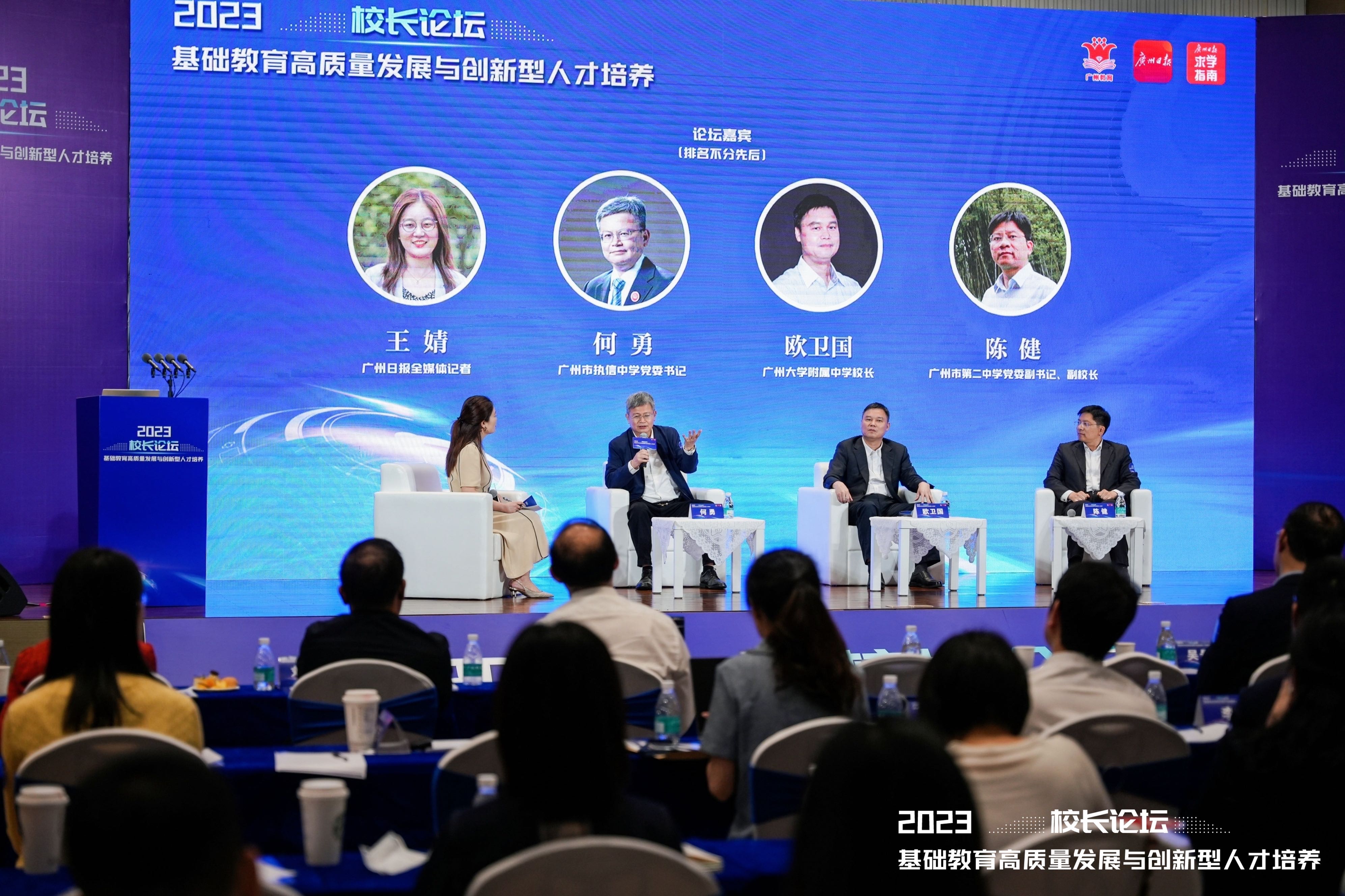 4月15日,由广州市教育局和广州日报社联合主办、广报求学承办的以“基础教育高质量发展与创新型人才培养”为主题的校长论坛举行,云集来自广东实验中学、深圳中学、广东广雅中学、广州市执信中学、广州市第二中学、广州大学附属中学、广州外国语学校、广州市铁一中学等众多知名中学的书记、校长,以及香港科技大学(广州)副校长吴景深,中国教育科学研究院比较教育研究所副所长、副研究员秦琳等教育领域专家,就拔尖创新人才系统性和贯通式培养发表真知灼见,贡献教育智慧。