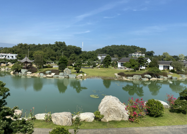 当中式建筑,遇到岭南盆景,一步一景,俨然成为一道独特景致。远远望去,迎宾厅、东门等多处可看到岭南盆景身影。