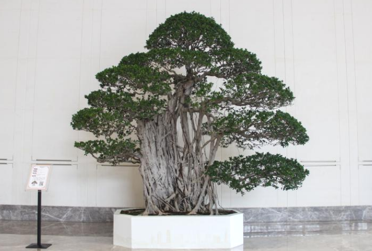 总高3.5米、冠幅3.6米的榕树盆景,正似大鹏展翅,拂云擎天,飘逸轻盈,舒展大气,颇有“大鹏一日同风起,扶摇直上九万里”的神韵和气势。