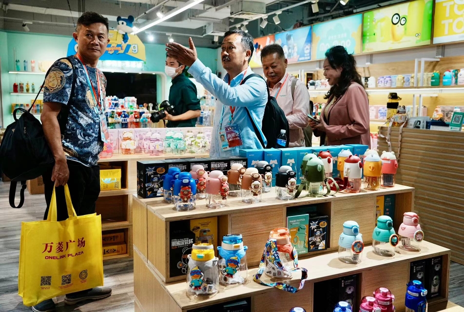 之后,考察团来到越秀区万菱广场。刚一进入,就好像置身于小商品的海洋。嘉宾饶有兴致地参观着琳琅满目的商品,不时与广州市玩具和礼品协会等负责人热切交谈,遇到感兴趣的商品便拿起把玩观察,询问价格、货量等信息。几番热烈交流下来,不少嘉宾已与感兴趣的商户和协会互留了联系方式。