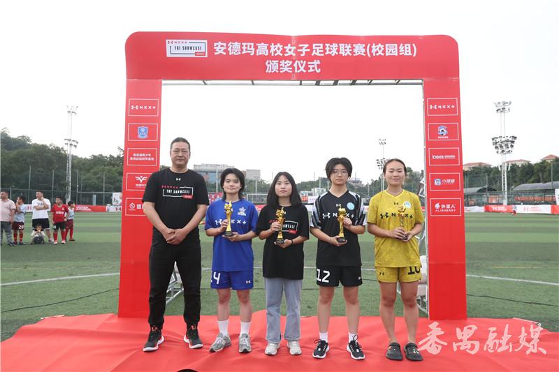 精彩纷呈的决赛结束后,首届安德玛高校女足联赛校园组的各个奖项也随之产生。在颁奖仪式现场,广东省粤港澳合作促进会文化传播委员会常务副主任张忠国,番禺区文化广电旅游体育局四级调研员李旭华,番禺区体育总会会长、木生缘机构董事长冯庆华,中国足球先生、木生缘球会会长吴群立,中国国家女子足球队教练区楚良,安德玛亚太区体育市场高级经理钟国梁,上海安美胜体育发展有限公司总经理高渊等领导嘉宾出席现场为获奖球队和球员颁奖。