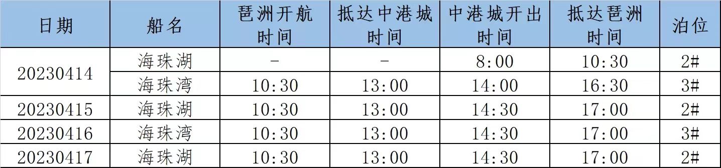 記者了解到,口岸碼頭試航期間開通琶洲港往返香港中國客運碼頭(中港城)的航線,航程兩個半小時,15-17日每天設1出1入兩個班次。