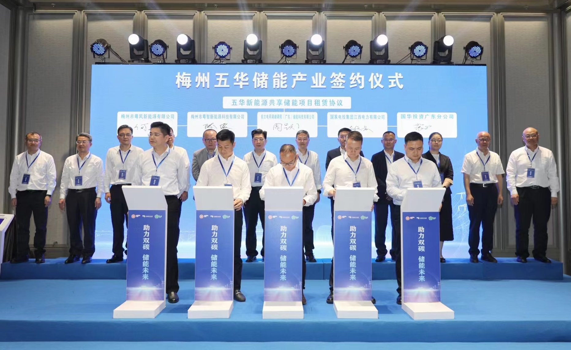 推介会上,梅州市人民政府与南方电网储能股份有限公司签订《储能产业发展合作共建协议》;五华县人民政府与南方电网调峰调频(广东)储能科技有限公司签订《五华县新型储能产业园战略合作协议》,同时分别与南方电网调峰调频(广东)储能科技有限公司、广东印象华云新能源环保科技有限公司等6家企业签订项目协议。南方电网调峰调频(广东)储能科技有限公司与国家电投集团江西电力有限公司、国华投资广东分公司等4家储能产业上下游企业签订《五华新能源共享储能项目租赁协议》。