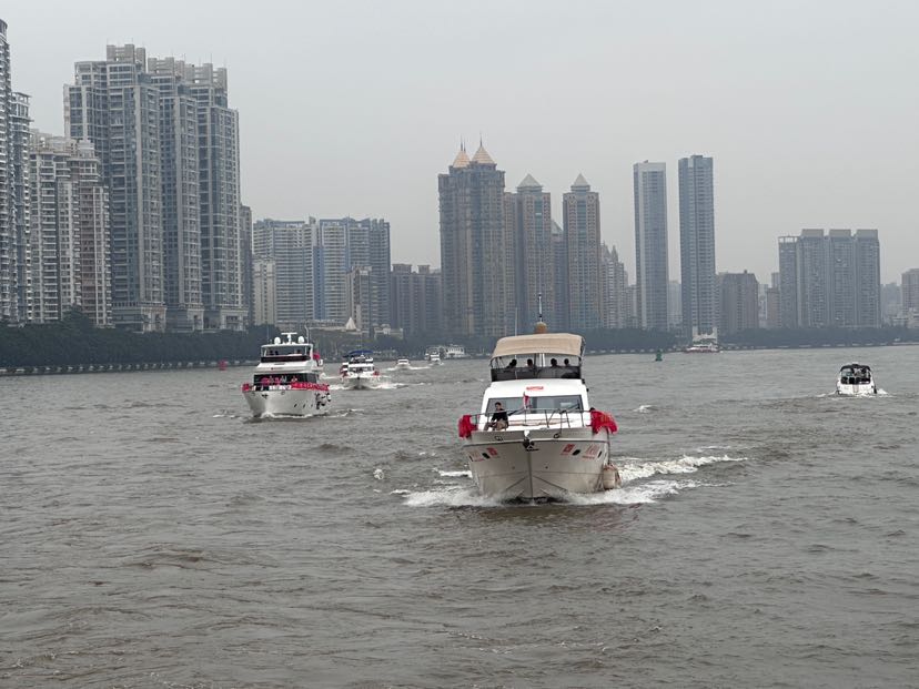 微风轻拂、帆影点点。18日上午10时许,10艘游艇及帆船组成的船队鸣笛出发,沿着珠江河道巡游,途经辛亥革命纪念馆、长洲岛、新担涌风雨廊桥、黄埔军校、琶洲国际会展中心、广州金融城、广州塔、海心沙后返航,游艇和帆船首次列队驶入广州市中心城区水域,吸引了广大市民拍摄打卡,成为珠江河道上一道靓丽风景。