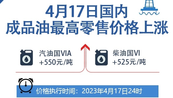 【17日24时起油价上调!汽、柴油价格每吨提高550元和525元】根据近期国际市场油价变化情况,按照现行成品油价格形成机制,自4月17日24时起,国内汽、柴油价格(标准品)每吨分别提高550元和525元。相关价格联动及补贴政策按现行规定执行。详情>>>
