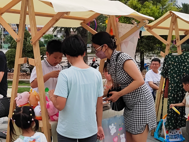 当天下午2时,大小“摊主”们准时来到活动场地,精心布置着自己的摊位,有序摆出自家闲置物品。各个摊位琳琅满目,其中大多为玩具、服装、小饰品、书籍、绿植等。“摊主”们一边积极地“推销”自家闲置物品,一边不时到别的摊位看一看,寻找自己所需的物品,每每为闲置品寻找到“新主人”后,大家脸上都洋溢着灿烂的笑容。一些小朋友也颇有“小老板”风范,热情地向往来群众“推销”自己的商品。手里拿着刚淘到的小电器的居民杨叔笑逐颜开。“让闲置不用的东西,都物尽其用,帮它找到新主人,我很开心。”“老板”吕小姐开心地说。