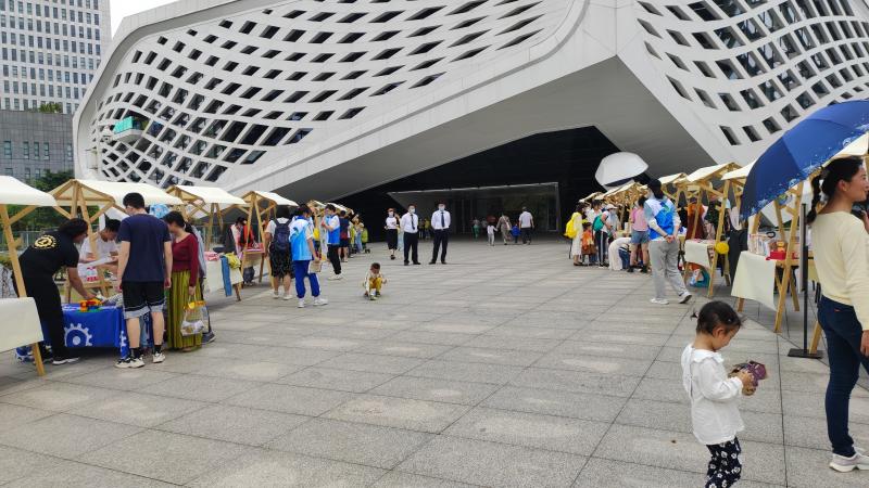 群众早早就在南沙区图书馆正门广场支起“摊位”。受访者供图