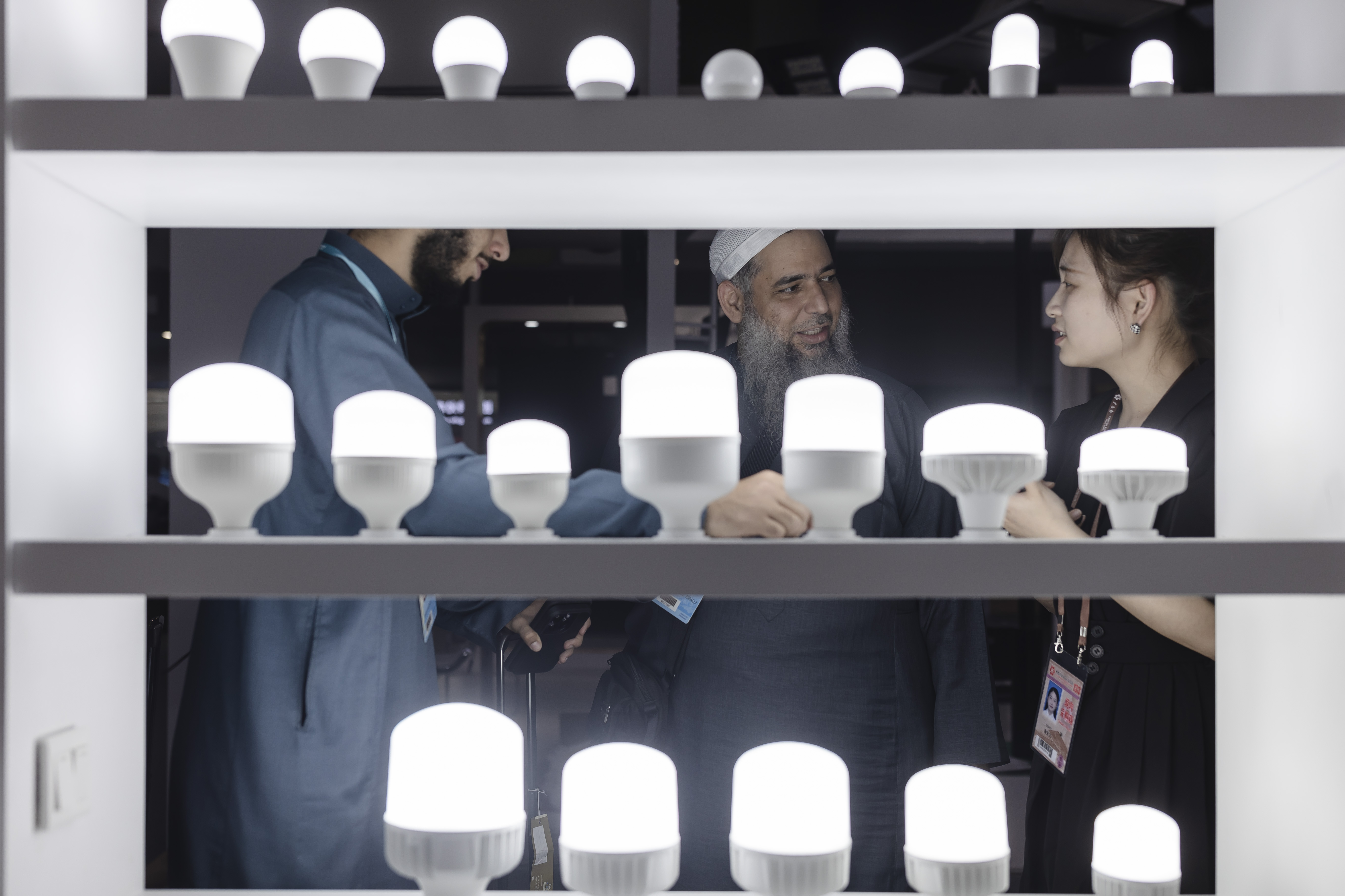 4月19日下午三点多,记者注意到,虽然第一期展会已经接近尾声,但不少参展商仍在展位上坚守,也有很多境外参展商把握最后的机会在展位上了解产品。