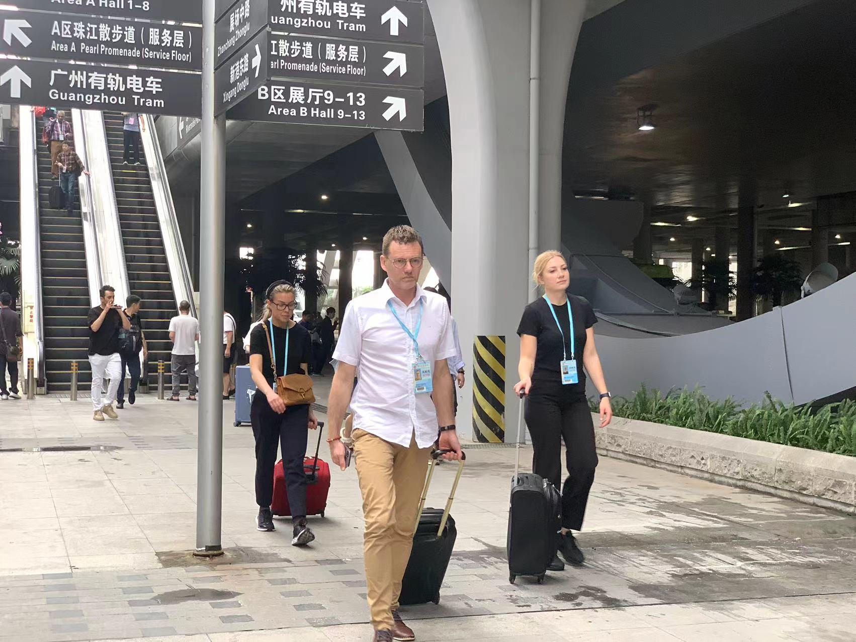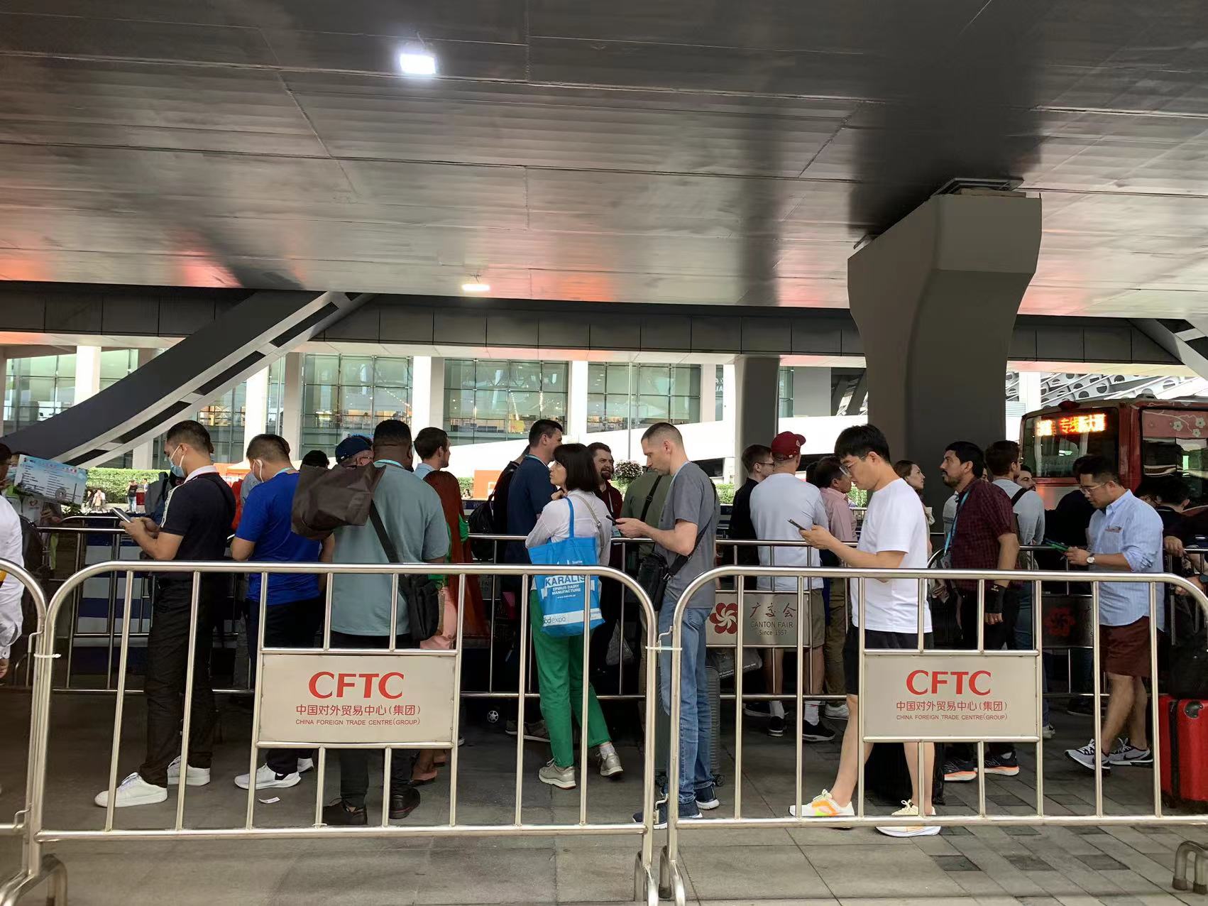 19日下午,第133届广交会第一期展览的最后一天,境内外参展商开始陆续撤场,来自全球的客商推着行李箱,各自登上接驳大巴或搭乘地铁,满载而归。