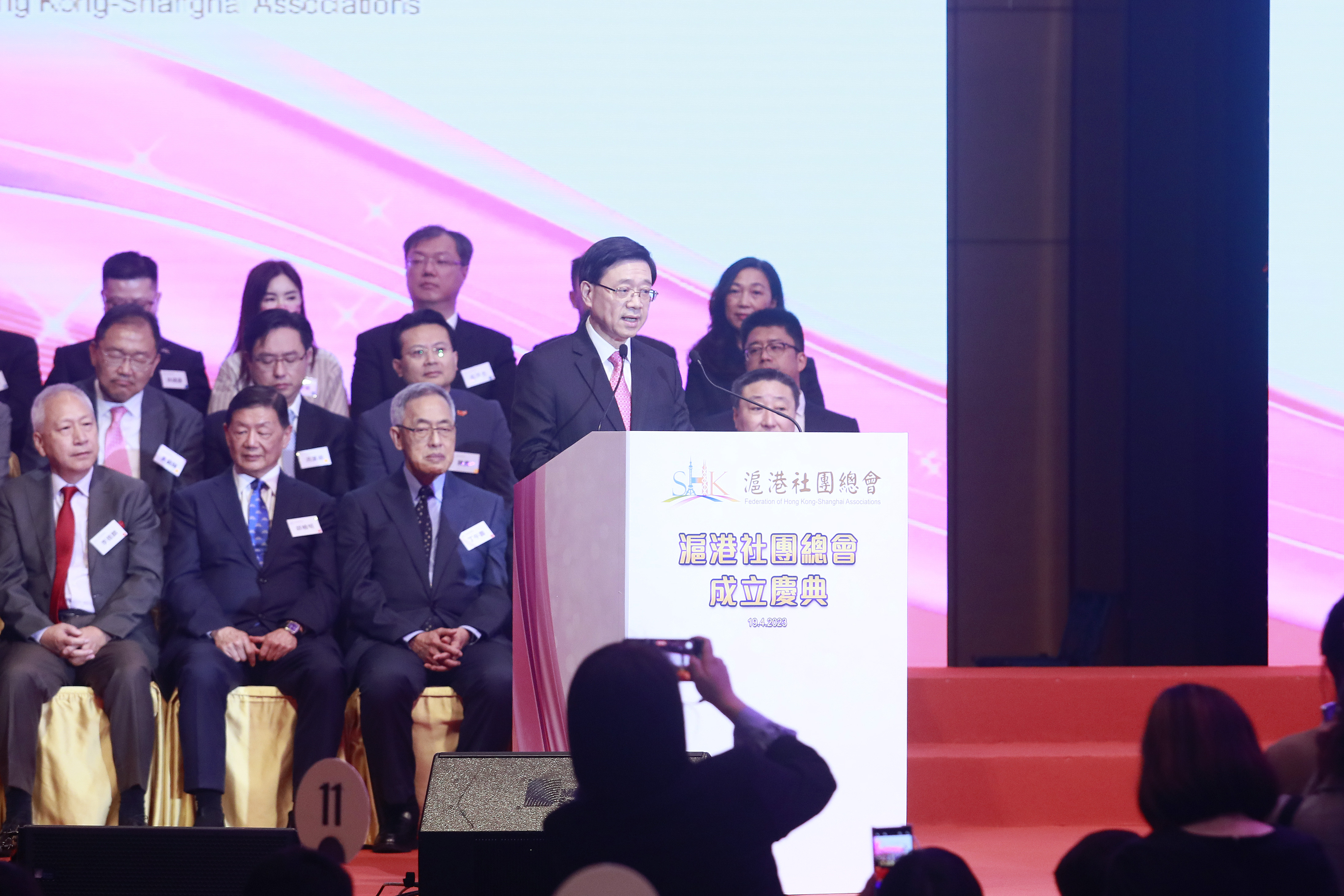 香港特別行政區行政長官李家超在滬港社團總會成立慶典暨執委會就職典禮上致辞