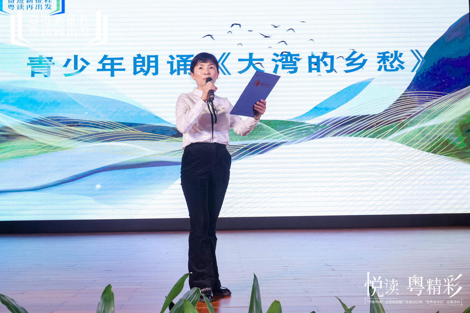 “巨灵闻谛,静待良机,跃而起,万川一水仰人杰……”在来自广州、横琴、澳门的孩子们的悠悠共读声中,启动仪式渐入高潮。发布《2022广东省全民阅读指数报告》和《2022年广东公共图书馆事业发展报告》,2022年,广东成年居民的综合阅读率为94.79%,电子读物阅读日均时长是纸质读物的三倍,全省150个县级以上公共图书馆共有建筑面积(只计总馆)173.14万平方米,全年进入图书馆的总人次合计8547.93万人次,全省阅读品牌达1245个;举行南国书香节首届“阅读推广奖”颁奖,表彰有突出贡献的阅读推广人和集体各十位,以鼓励的方式在社会营造爱读书、读好书、善读书的浓厚氛围;推出《向着阅读的方向》阅读纪录片,展示可爱、可敬的阅读推广人与集体背后丰饶、深厚的阅读故事及精神追求。