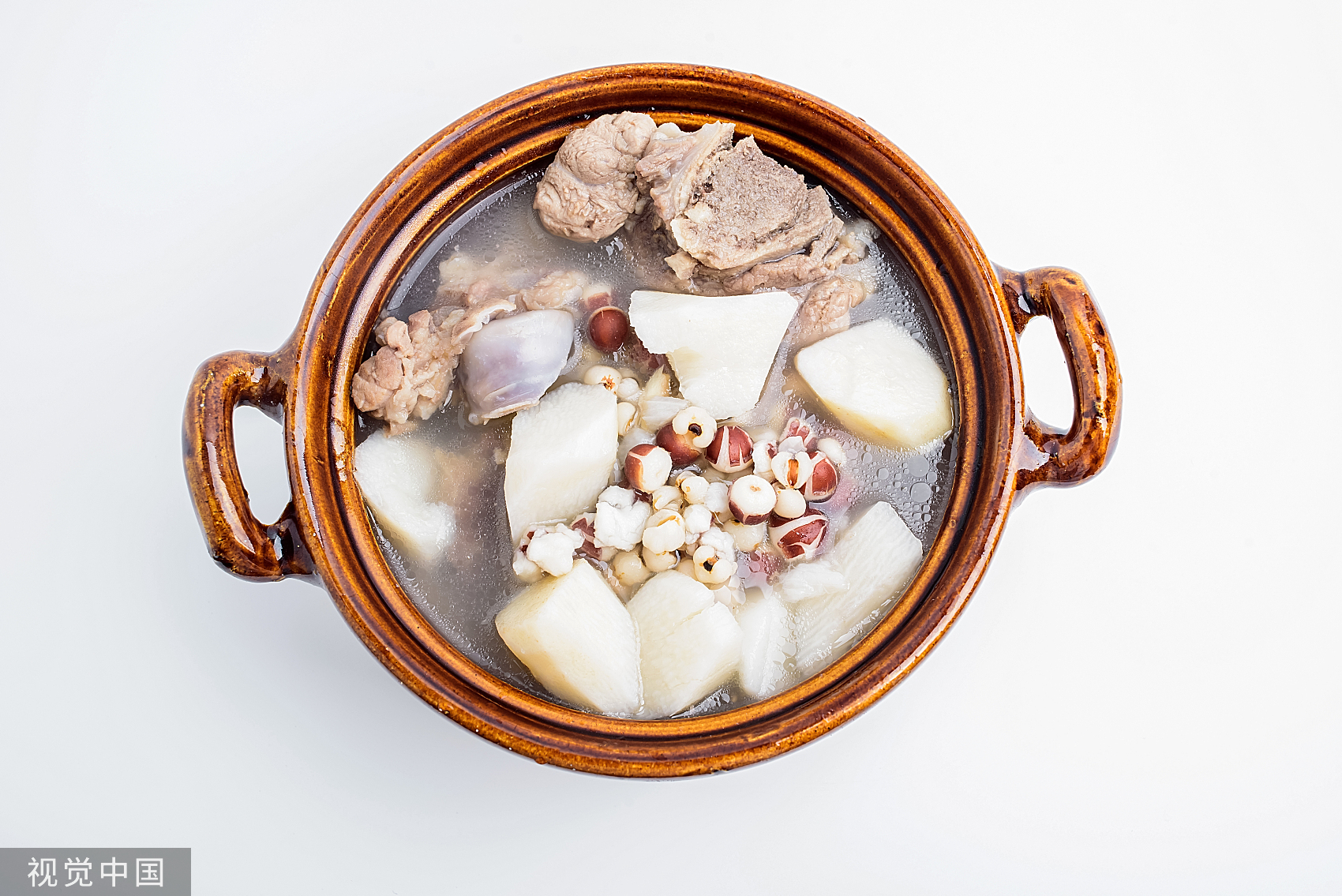 做法:淮山用水浸泡;扁豆、薏米用锅炒至微黄;排骨洗净;芡实、北芪、白术洗净;全部用料放进汤煲内,用中火煲一个半小时,调味即可。健脾醒胃,祛湿抗疲劳。