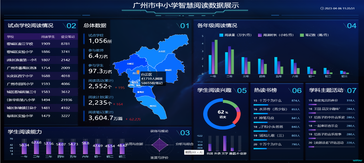 广州市中小学生智慧型成长阅读平台实现每天数据更新